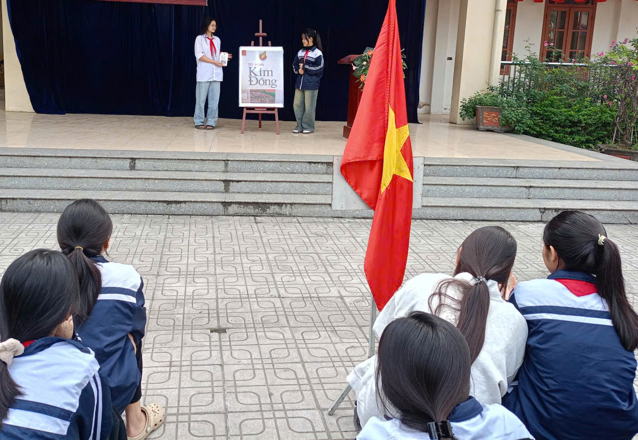ĐẠI DIỆN LỚP 9C GIỚI THIỆU SÁCH TRONG GIỜ CHÀO CỜ ĐẦU TUẦN